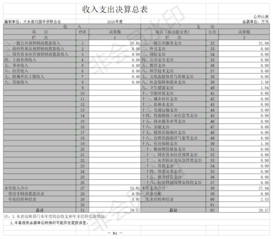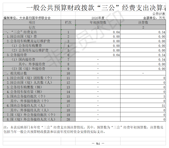 納入本套決算匯編范圍的單位共1個,即:大余縣歸國華僑聯合會。