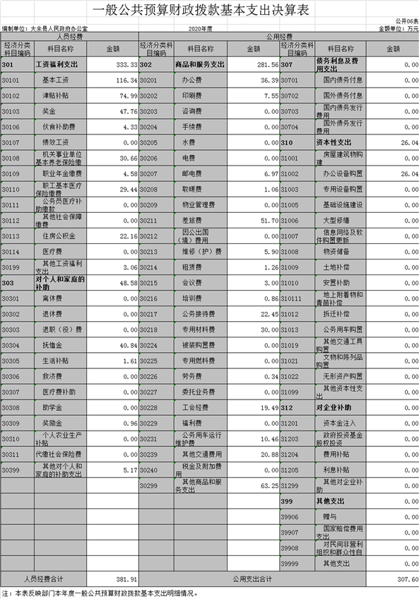 (一)一般公共服務支出(類)政府辦公廳(室)及相關機構事務(款)行政運行(項):反映行政單位(包括實行公務員管理的事業單位)的基本支出。