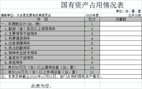 截止2020年12月31日,本部門(單位)國有資產占用情況見公開10表《國有資產占用情況表》。其中車輛中的其他用車主要是:無其他用車。