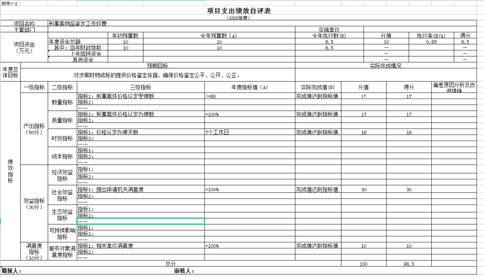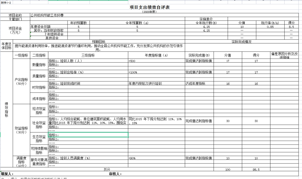 根據部門整體支出績效評價指標體系,2020年度評價得分為98分。