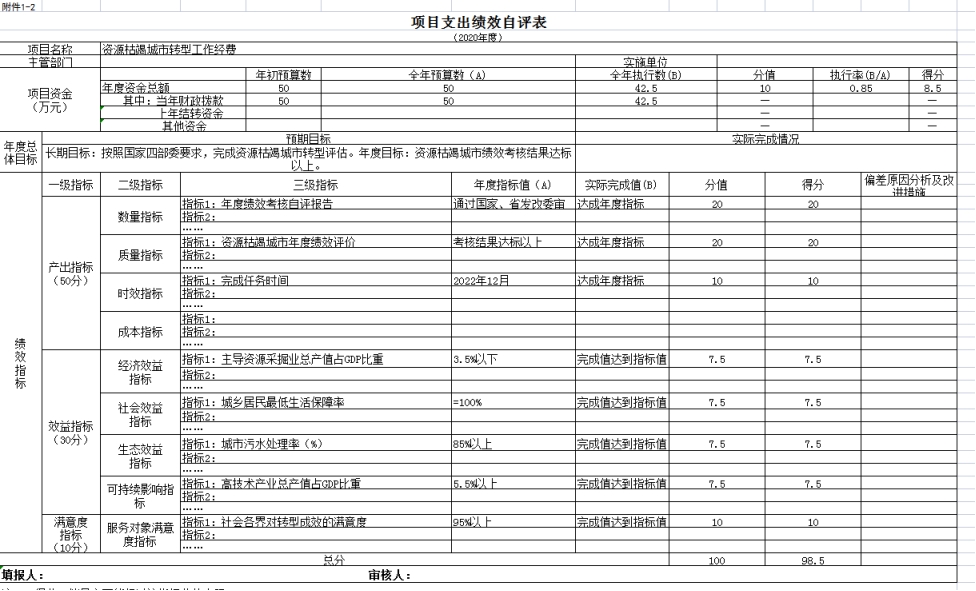 我單位今年在部門決算中反映資源枯竭城市轉型項目績效自評結果。