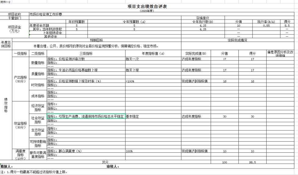 項目績效自評綜述:根據年初設定的績效目標,該項目自評得98.5分。項目全年預算數為50萬元,執行數為50萬元,完成預算的100%。