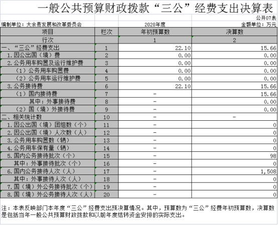 (五)“三公經費”:納入財政預決算管理的“三公”經費,是指部門用財政撥款安排的因公出國(境)費、公務用車購置及運行費和公務接待費。其中,因公出國(境)費反映單位公務出國(境)的國際旅費、國外城市間交通費、住宿費、伙食費、培訓費、公雜費等支出;公務用車購置及運行費反映單位公務用車車輛購置支出(含車輛購置稅)及租用費、燃料費、維修費、過路過橋費、保險費、安全獎勵費用等支出;公務接待費反映單位按規定開支的各類公務接待支出。