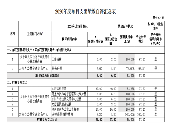 今年在部門決算中反映工作經(jīng)費、大廳運行經(jīng)費、網(wǎng)上審批和電子監(jiān)察系統(tǒng)維護費、農(nóng)村產(chǎn)權(quán)流轉(zhuǎn)交易中心經(jīng)費、大廳便民服務(wù)經(jīng)費、政務(wù)服務(wù)辦公室工作經(jīng)費績效自評結(jié)果。