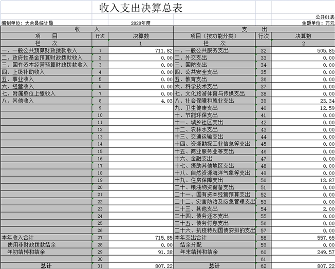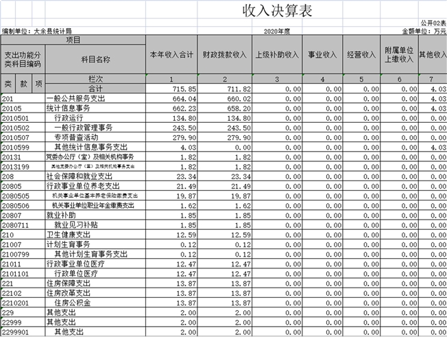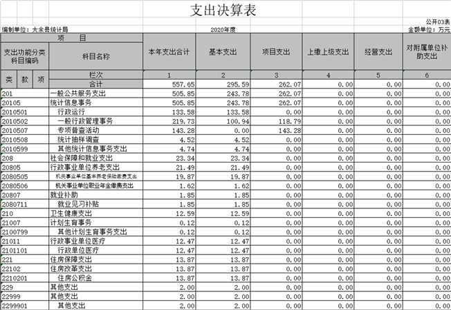 納入本套部門決算匯編范圍的單位共1個,包括:大余縣統計局本級、縣社情民意調查中心、統計執法大隊。