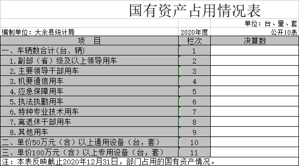 截止2020年12月31日,本部門國有資產占用情況見公開10表《國有資產占用情況表》。其中車輛中的無其他用車。