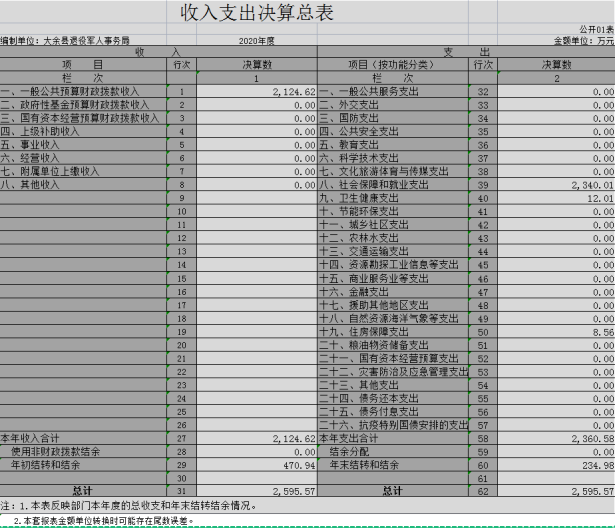 本部門2020年度收入總計2595.57萬元,其中年初結轉和結余470.94萬元,較2019年增加1758.58萬元,增長210.11%;本年收入合計2124.62萬元,較2019年增加1287.63萬元,增長153.84%,主要原因是:因我局于2019年成立,業務工作量顯著增加。