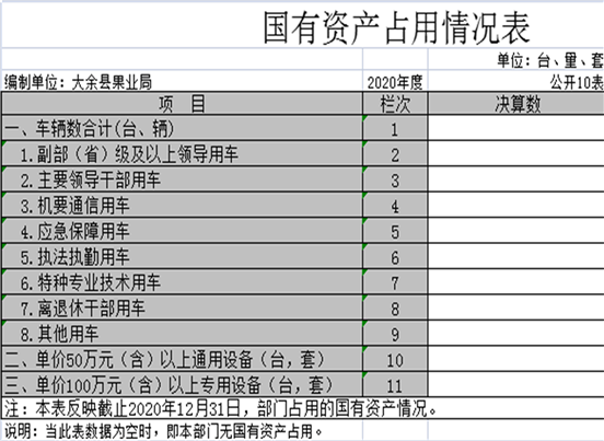 截止2020年12月31日,本部門(mén)國(guó)有資產(chǎn)占用情況見(jiàn)公開(kāi)10表《國(guó)有資產(chǎn)占用情況表》。本部門(mén)共有車輛0輛,其中,副部(省)級(jí)及以上領(lǐng)導(dǎo)用車0輛、主要領(lǐng)導(dǎo)干部用車0輛、機(jī)要通信用車0輛、應(yīng)急保障用車0輛、執(zhí)法執(zhí)勤用車0輛、特種專業(yè)技術(shù)用車0輛、其他用車0輛,單位價(jià)值50萬(wàn)元以上通用設(shè)備0臺(tái)(套);單位價(jià)值100萬(wàn)元以上專用設(shè)備0臺(tái)(套)。