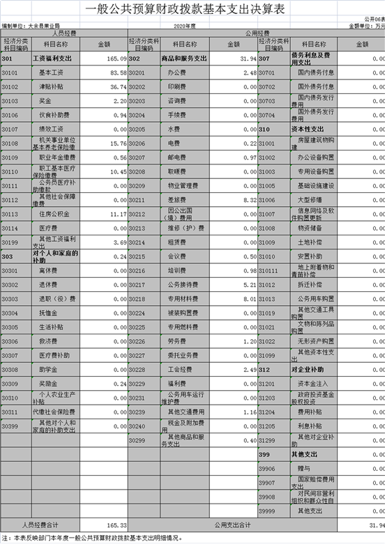 (一)工資福利支出165.09萬元,較2019年減少 6.12 萬元,減少3.57 %,主要原因是:人員減少。