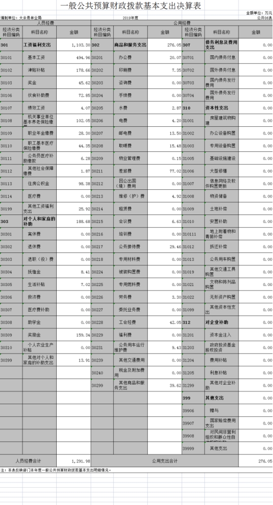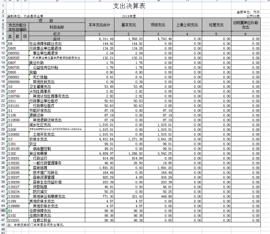 大余縣林業局2019年度部門決算