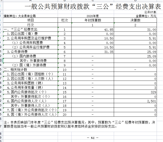 (九)“三公”經費支出:指用一般公共預算財政撥款安排的因公出國(境)費、公務用車購置及運行維護費和公務接待費。其中,因公出國(境)費反映單位公務出國(境)的國際旅費、國外城市間交通費、住宿費、伙食費、培訓費、公雜費等支出;公務用車購置及運行維護費反映單位公務用車車輛購置支出(含車輛購置稅、牌照費),按規(guī)定保留的公務用車燃料費、維修費、過橋過路費、保險費、安全獎勵費用等支出;公務接待費反映單位按規(guī)定開支的各類公務接待(含外賓接待)支出。