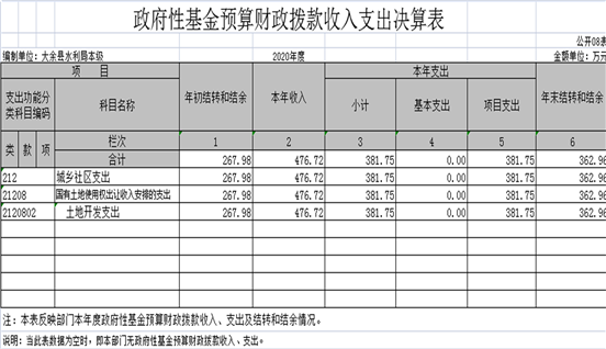 納入本套部門決算匯編范圍的單位共1個(gè),包括:大余縣水利局(需按單位預(yù)算級次分別列出)。