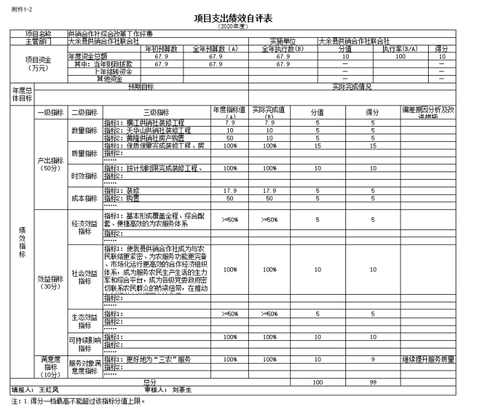 供銷合作社綜合改革工作經(jīng)費(fèi)項(xiàng)目績(jī)效自評(píng)綜述:根據(jù)年初設(shè)定的績(jī)效目標(biāo),供銷合作社綜合改革工作經(jīng)費(fèi)項(xiàng)目績(jī)效自評(píng)得分為99分。項(xiàng)目經(jīng)費(fèi)來(lái)源是上年結(jié)轉(zhuǎn)結(jié)余,執(zhí)行數(shù)為67.9萬(wàn)元。