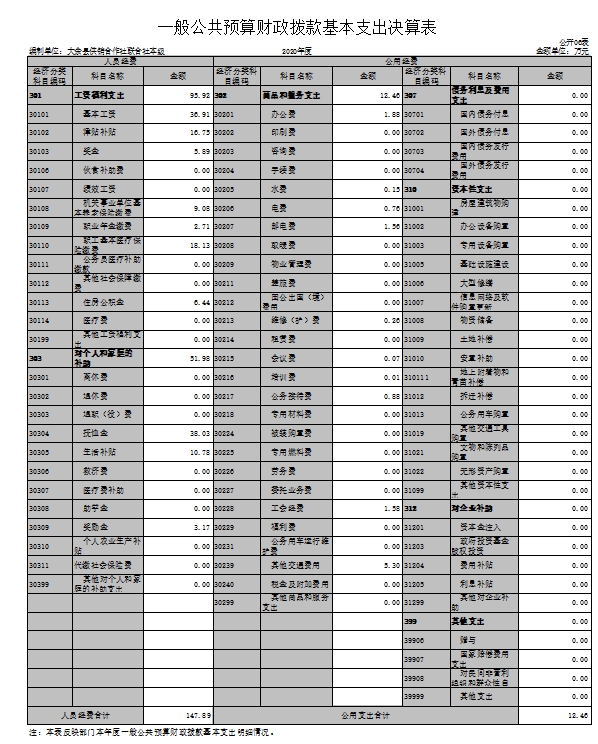 六、一般公共預(yù)算財(cái)政撥款基本支出決算表