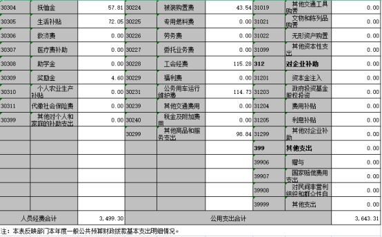 (一)一般公共服務支出:反映行政單位(包括實行公務員管理的事業單位)的基本支出。
