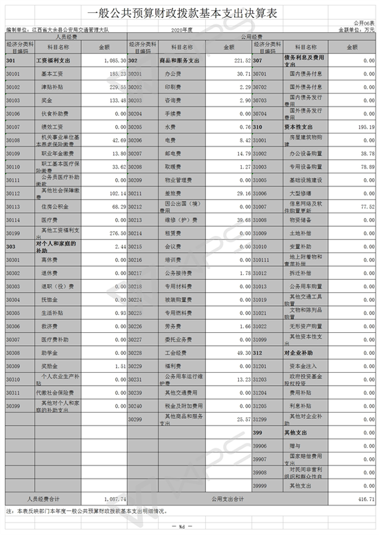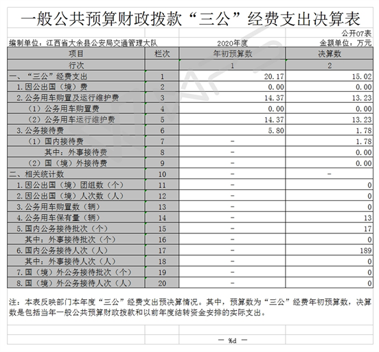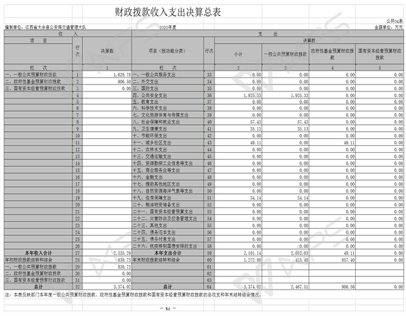附件1江西省大余縣公安局交通管理大隊本級2020年決算公開表
