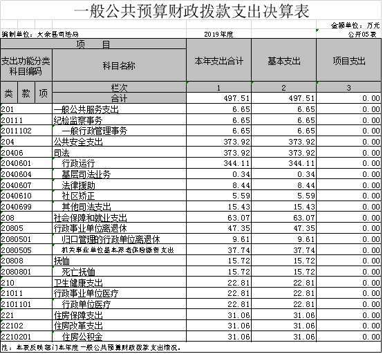 大余縣司法局2019年度部門決算