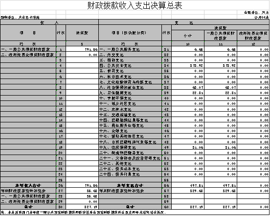 四、財(cái)政撥款收入支出決算總表