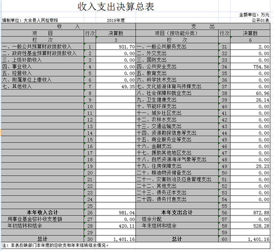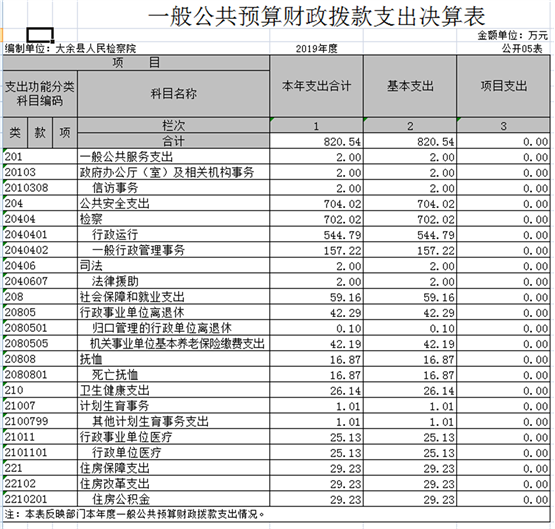 納入本套部門決算匯編范圍的單位共1個,即大余縣人民檢察院。