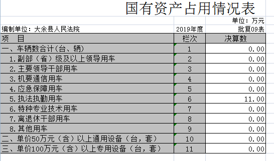 截止2019年12月31日,本部門共有車輛11輛,其中,執(zhí)法執(zhí)勤用車11輛。