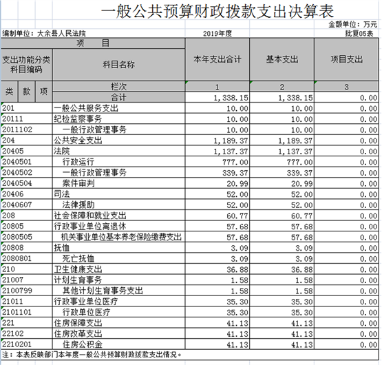 五、一般公共預(yù)算財(cái)政撥款支出決算表
