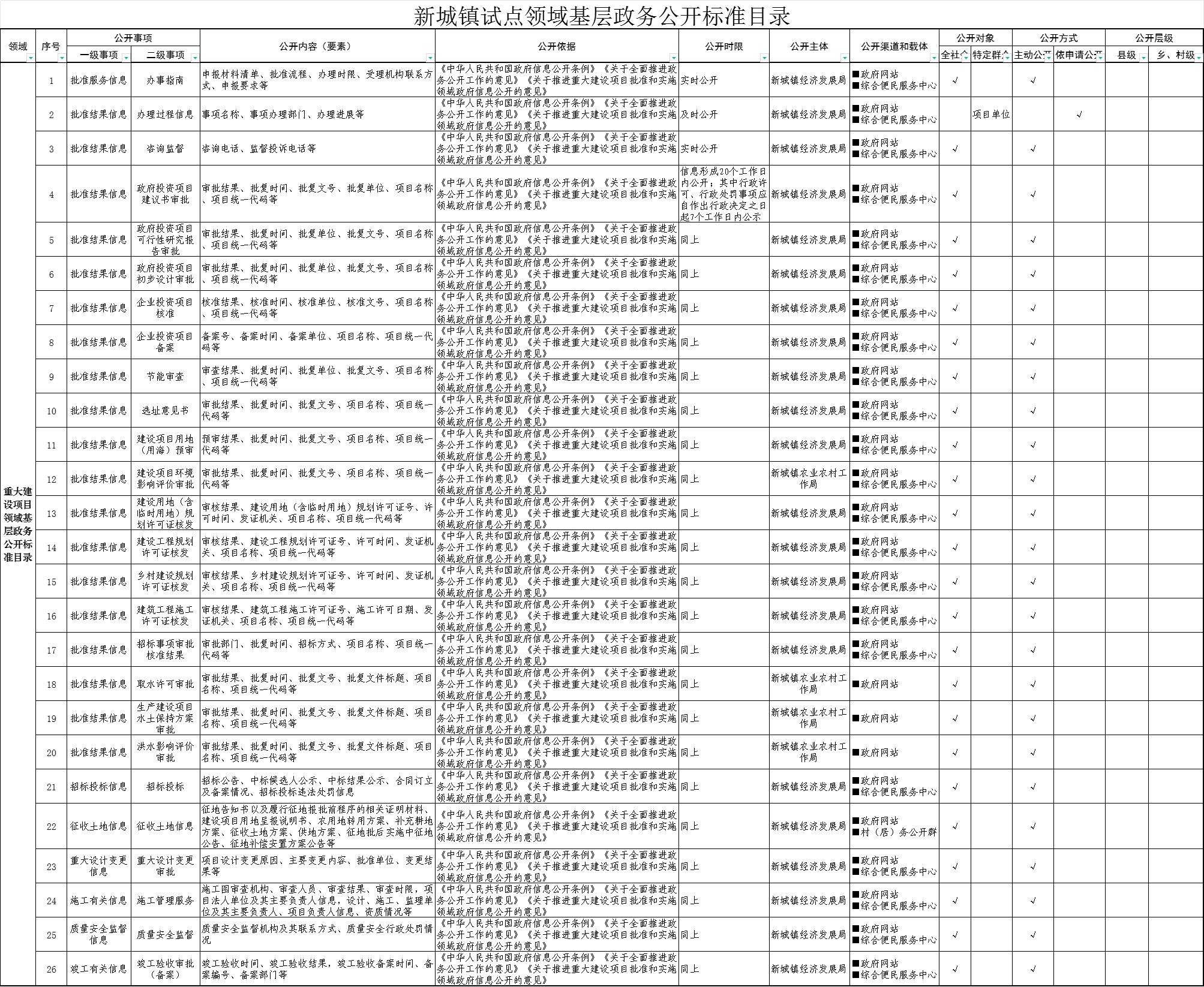 新城鎮(zhèn)試點(diǎn)領(lǐng)域基層政務(wù)公開(kāi)標(biāo)準(zhǔn)目錄