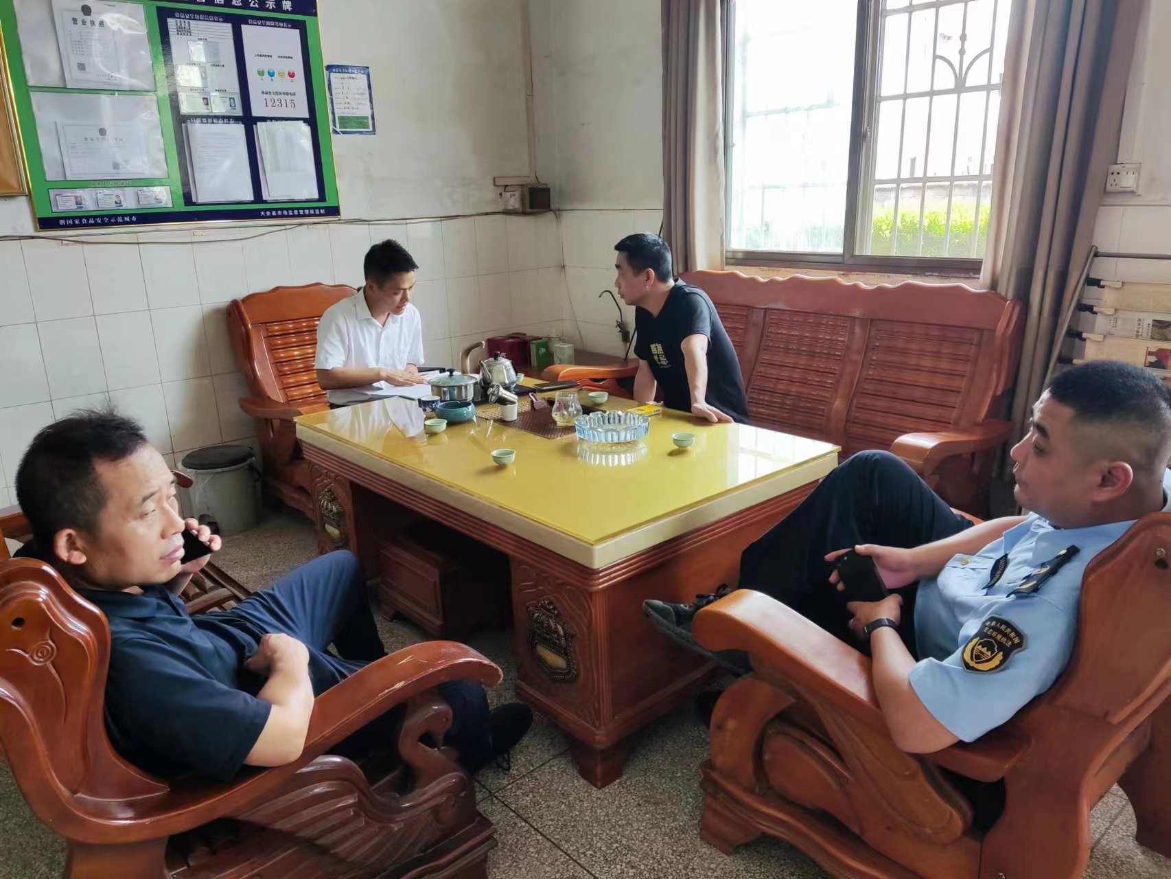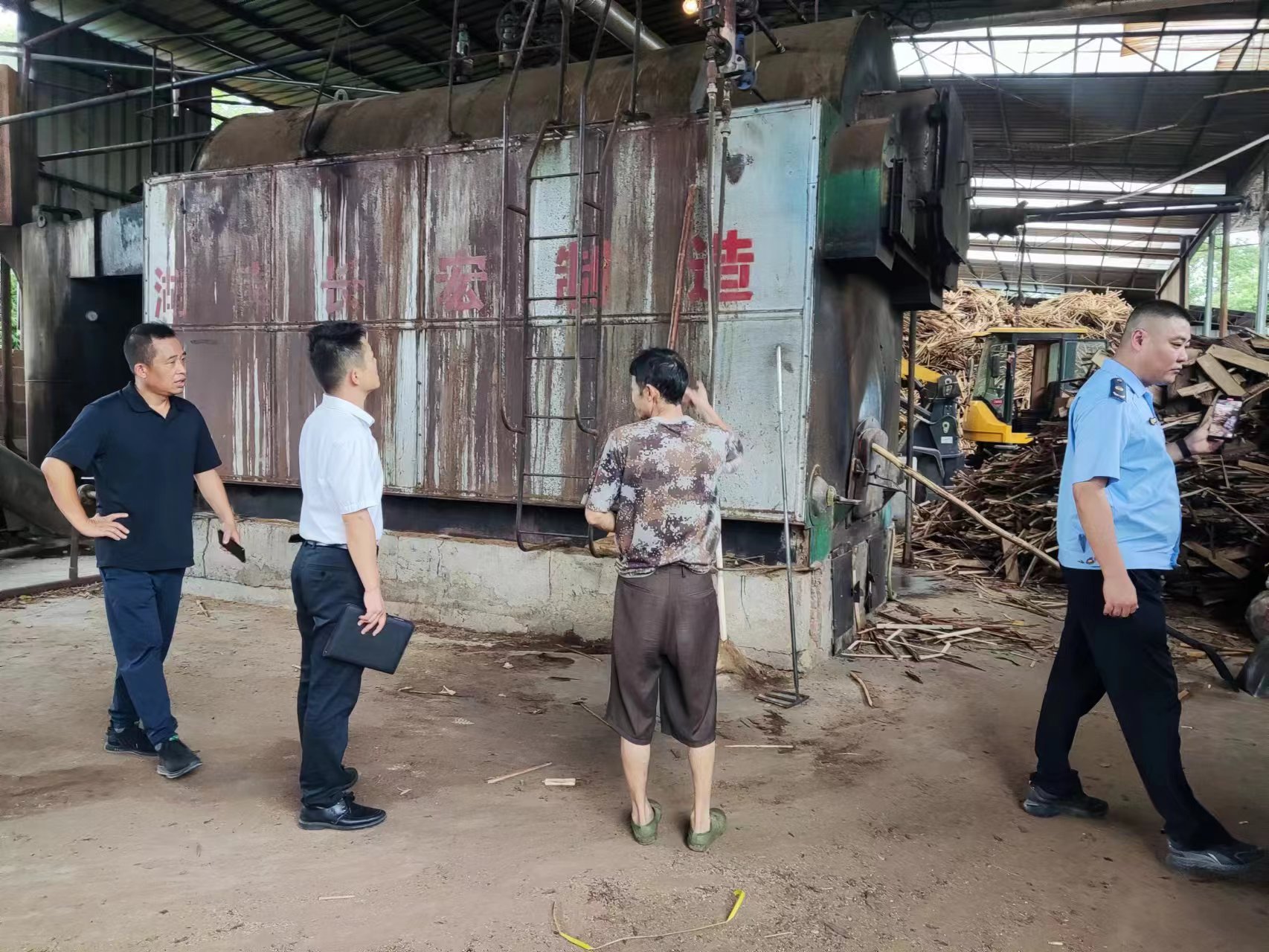 新城鎮黨委宣傳、統戰委員許良福陪同縣生態環境局譚祖斌隊長、曹慎熙隊長在觀路村對企業生產環保問題回頭看