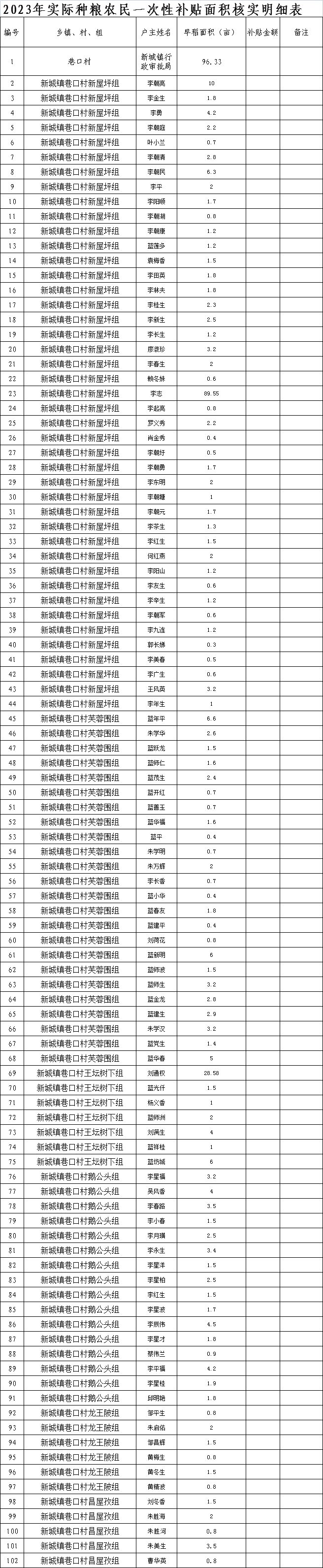 【涉農補貼】2023年實際種糧農民一次性補貼面積核實明細表