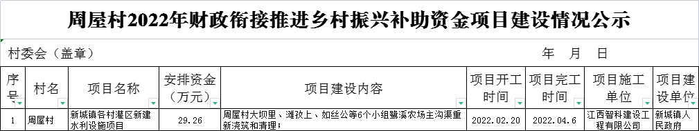 周屋村2022年財政銜接推進鄉(xiāng)村振興補助資金項目建設情況公示