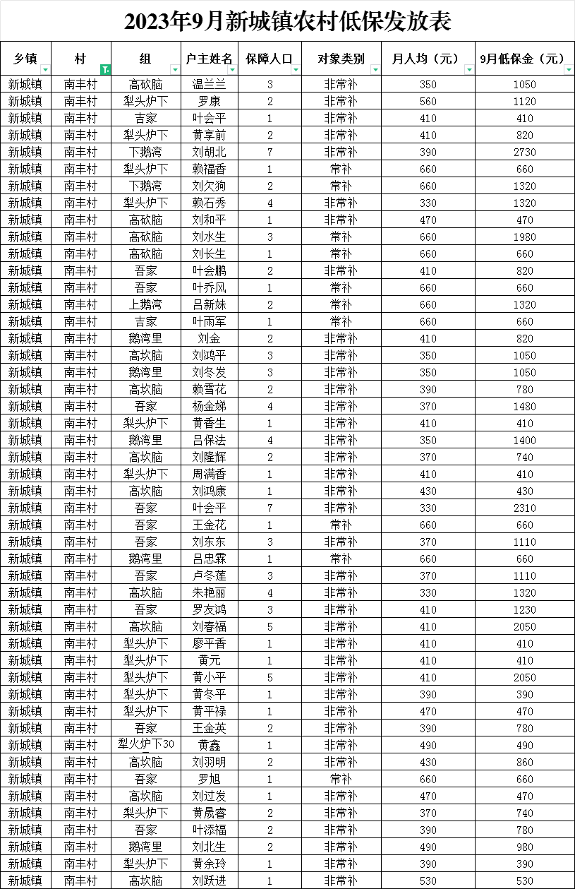 新城鎮(zhèn)南豐村2023年9月農(nóng)村低保發(fā)放公示