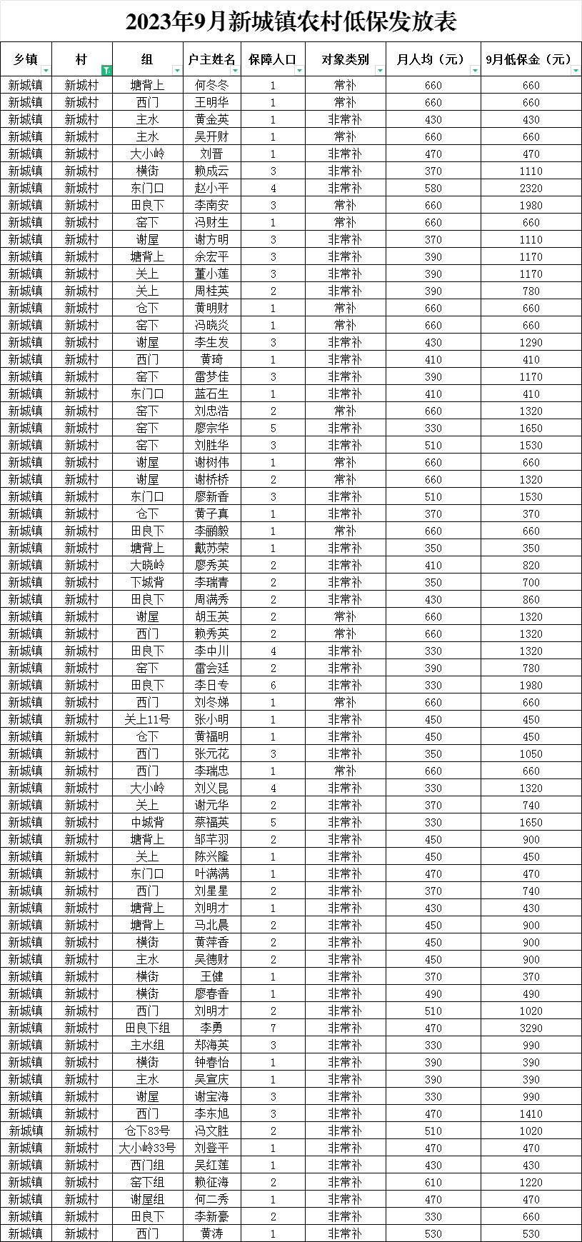 新城鎮(zhèn)新城村2023年9月農(nóng)村低保發(fā)放公示