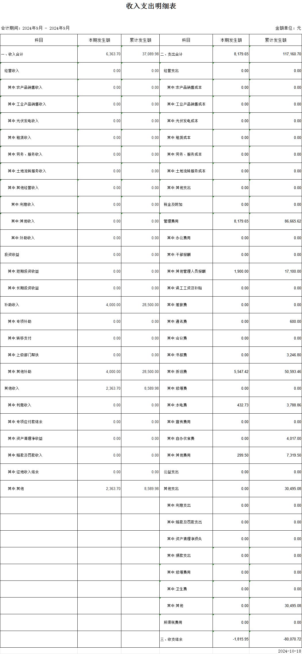 龍王廟村2024年9月財務收支情況公示
