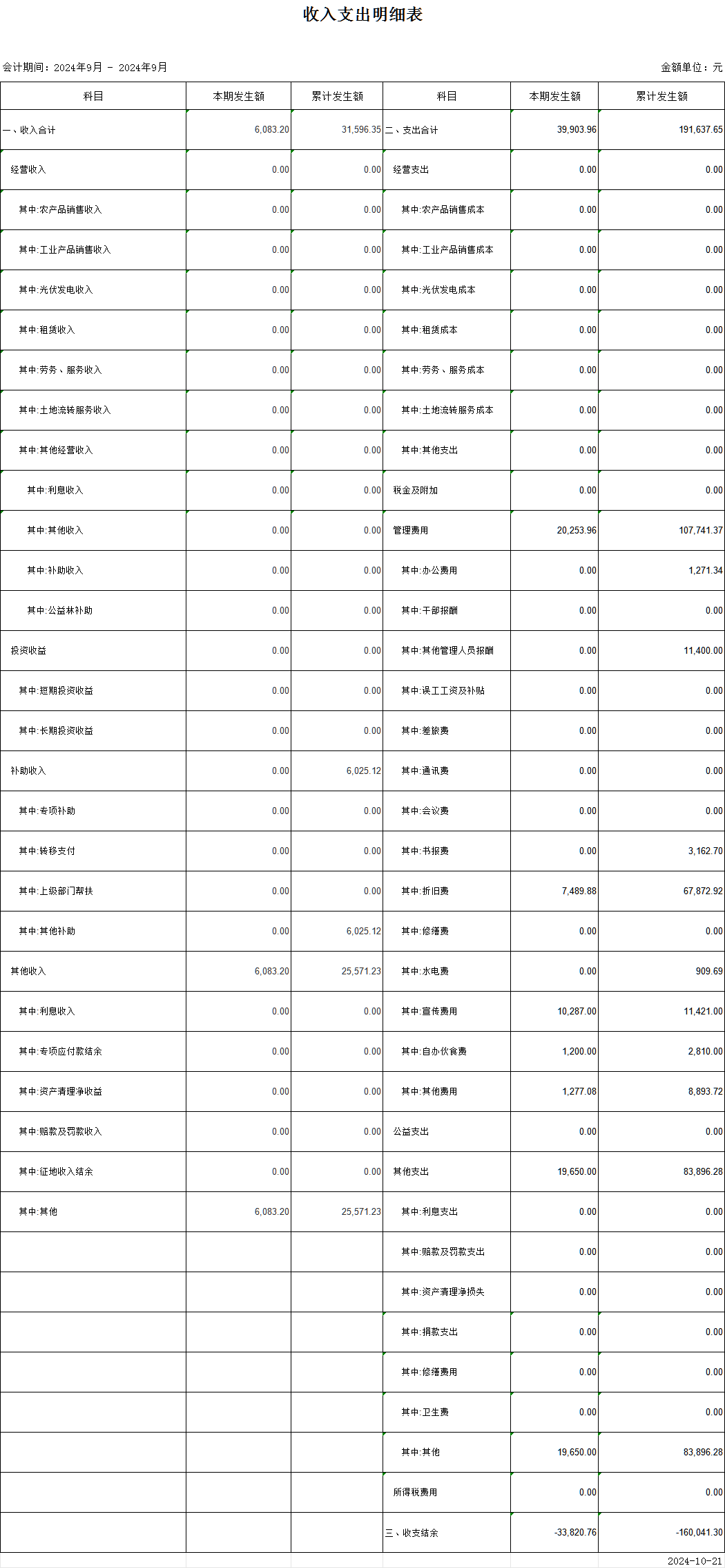 觀路村2024年9月財務收支情況公示