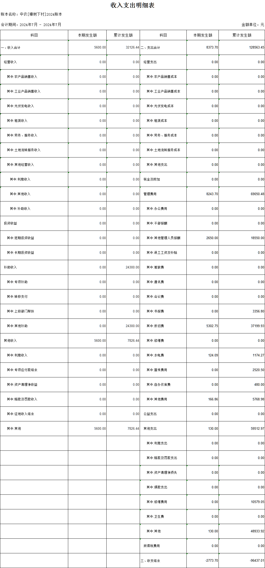 樟樹(shù)下村2024年7月財(cái)務(wù)收支情況公示