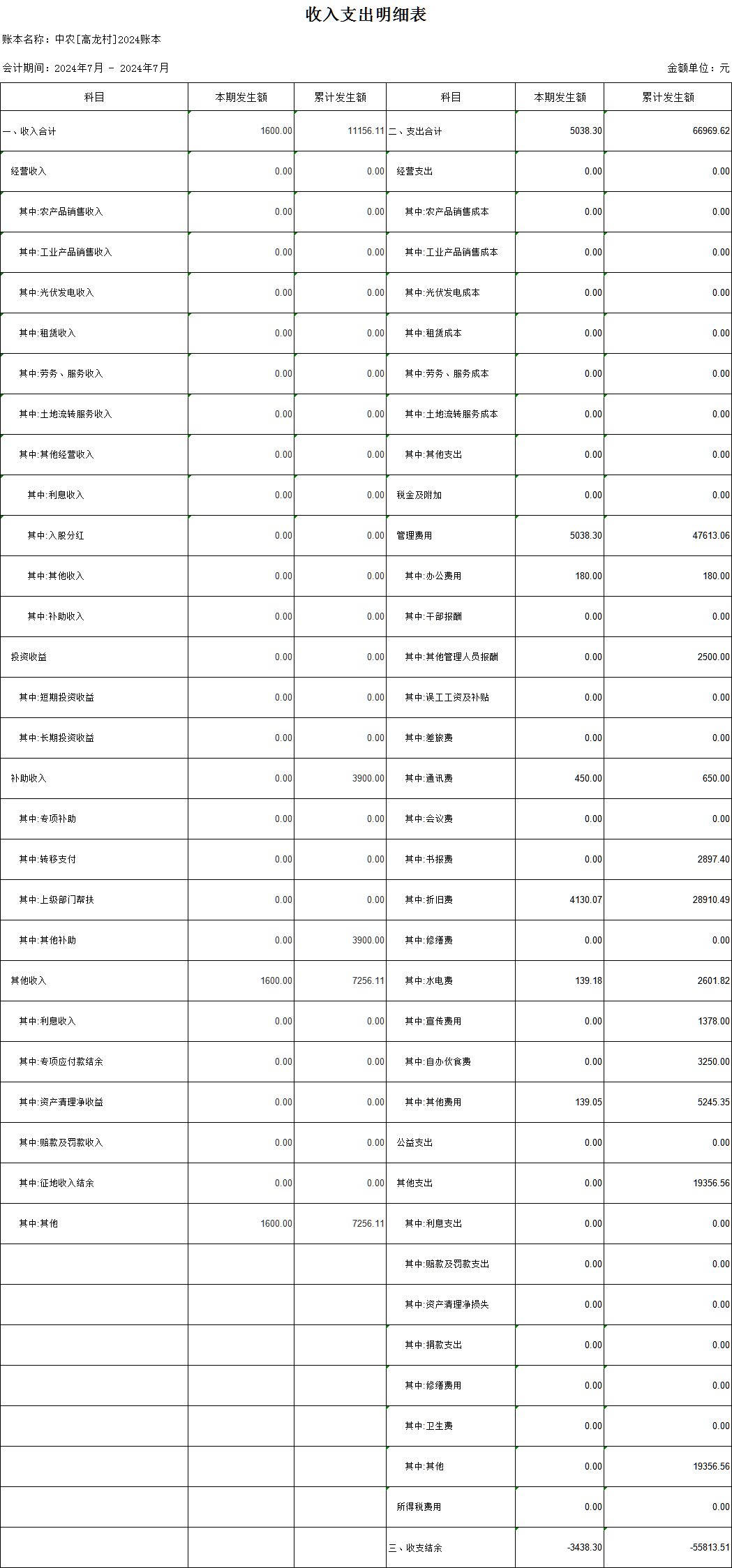 高龍村2024年7月財務(wù)收支情況公示