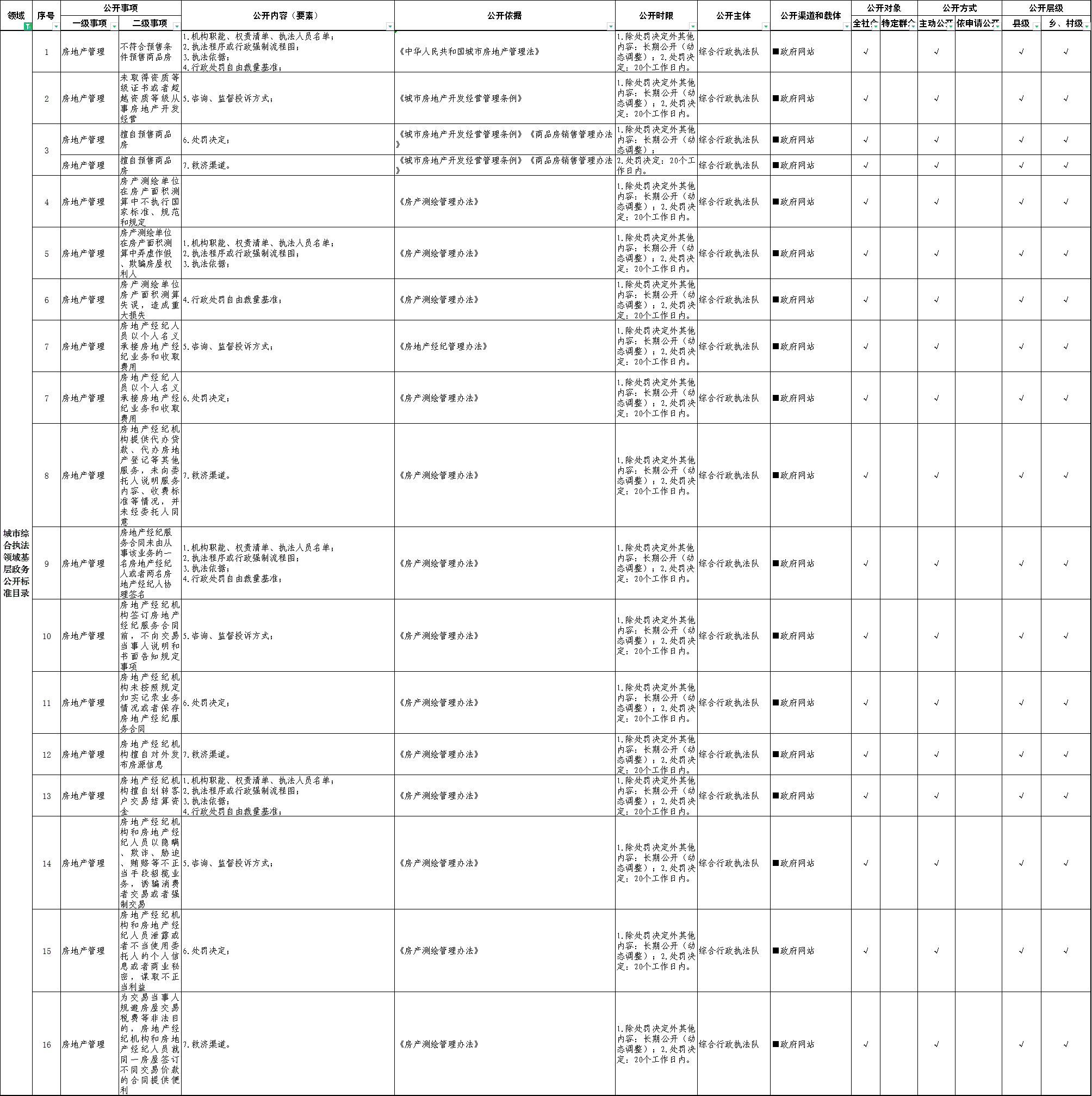 (十八)城市綜合執法領域基層政務公開標準目錄