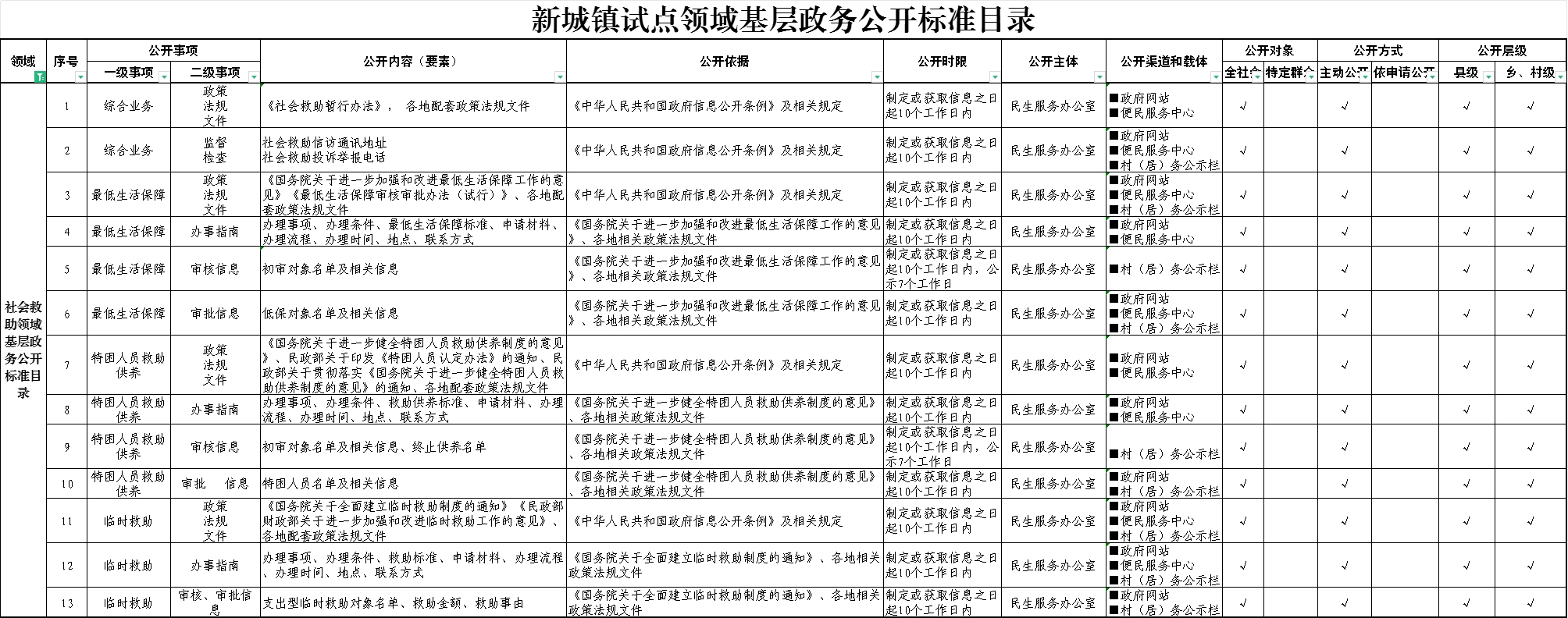 (五)社會救助領域基層政務公開標準目錄