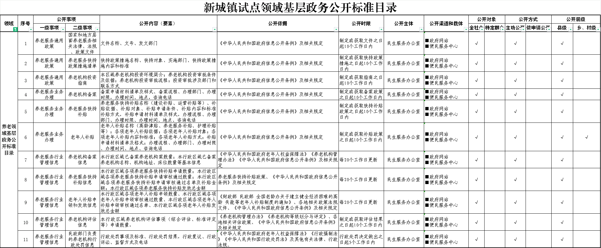 (六)養(yǎng)老服務領域基層政務公開標準目錄