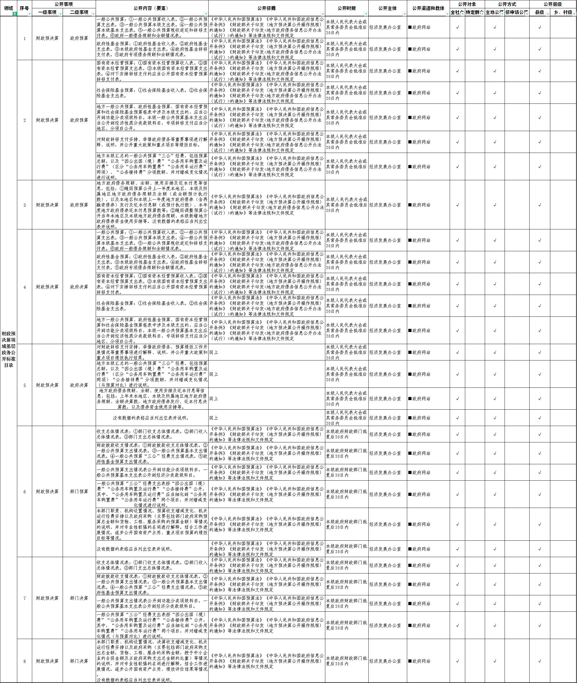 (八)財(cái)政預(yù)決算領(lǐng)域基層政務(wù)公開標(biāo)準(zhǔn)目錄