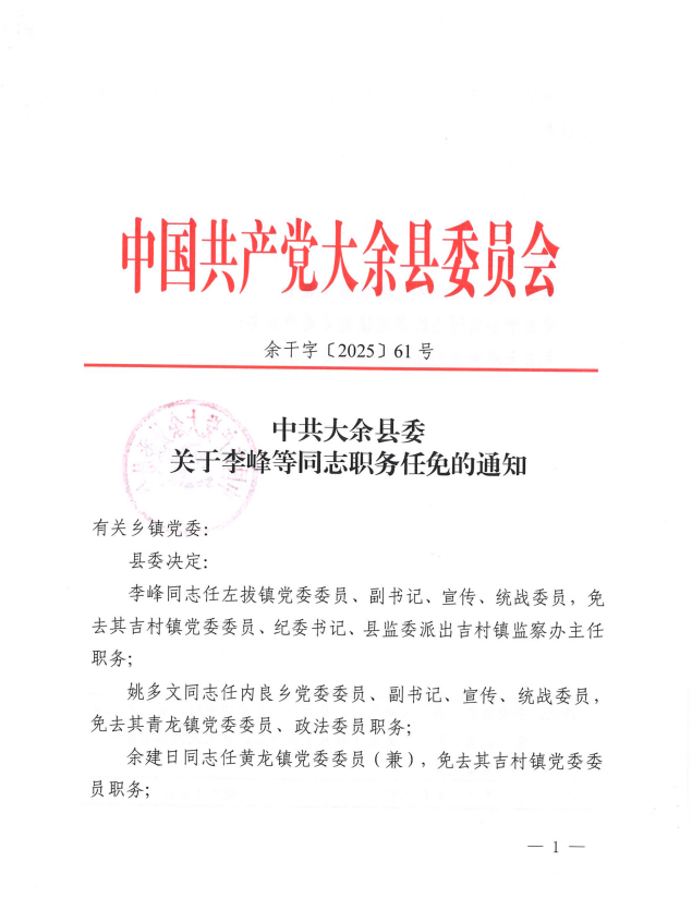 余干字〔2025〕68號關于郭世定等同志職務任免的通知