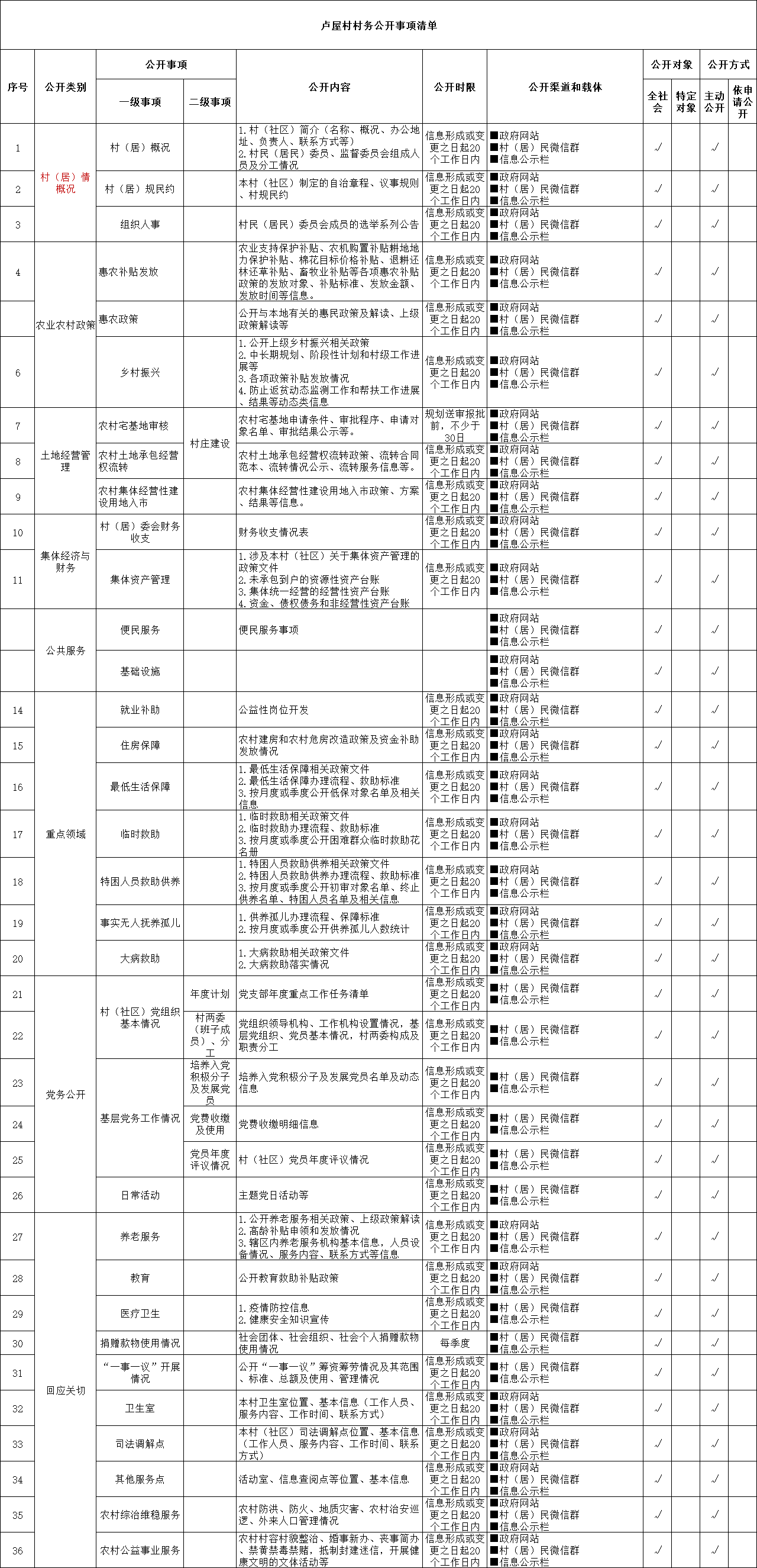 盧屋村村務公開事項清單