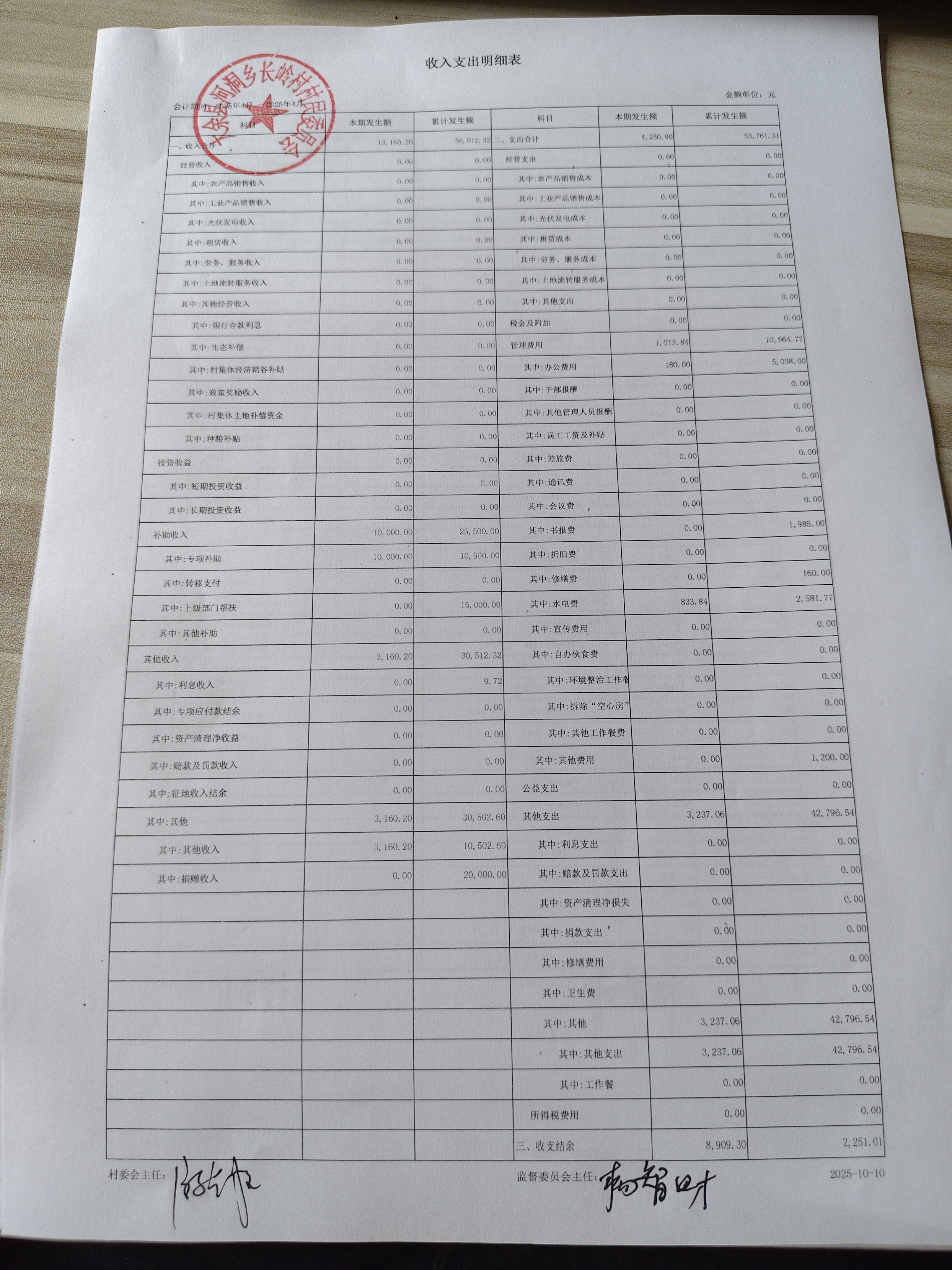 長嶺村4月份財務收支明細表