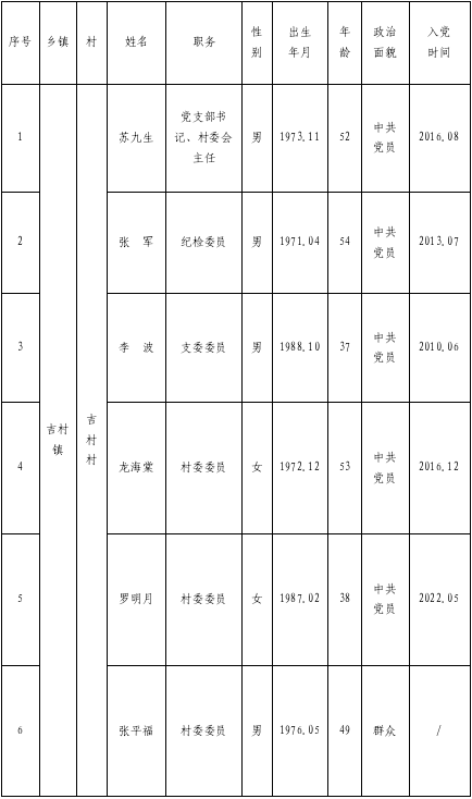 吉村村下設(shè)1個(gè)黨支部,3個(gè)黨小組,現(xiàn)有黨員32人,其中1名預(yù)備黨員,女性黨員7人,男性黨員25人,35歲及以下7人,36-45歲8人,46-54歲6人,55-59歲1人,60歲以上10人,現(xiàn)有黨員致富帶頭人3人