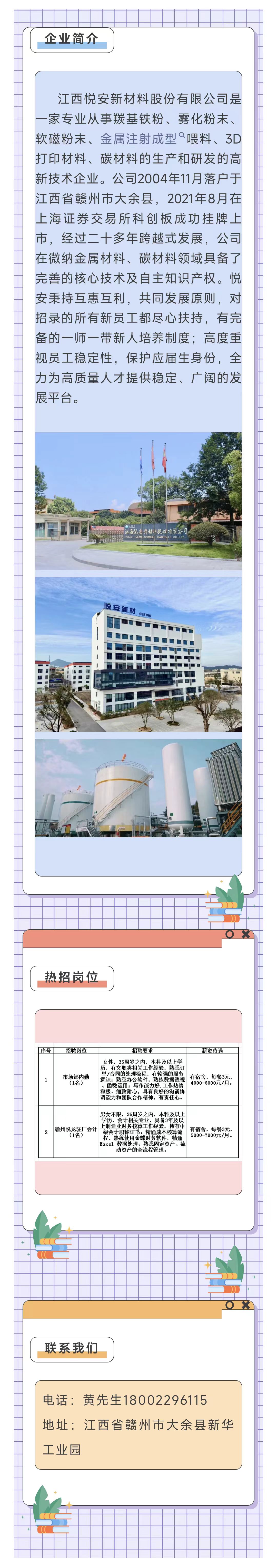 大余縣招聘資訊—江西悅安新材料股份有限公司