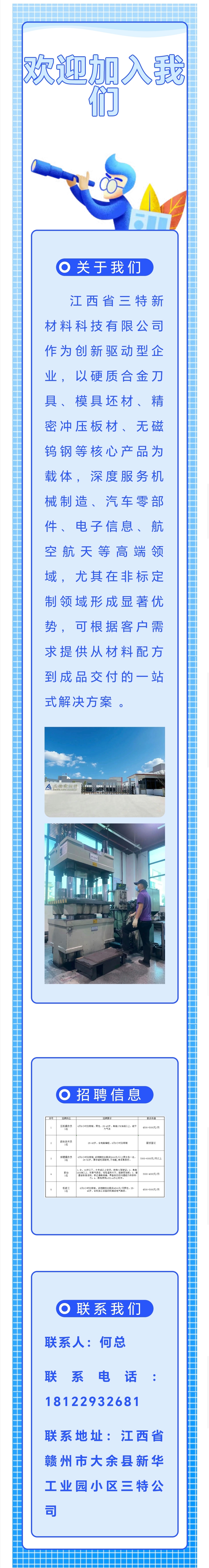 大余縣招聘資訊—江西三特新材料科技有限公司