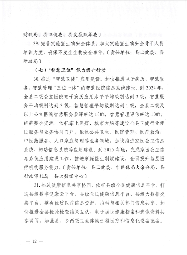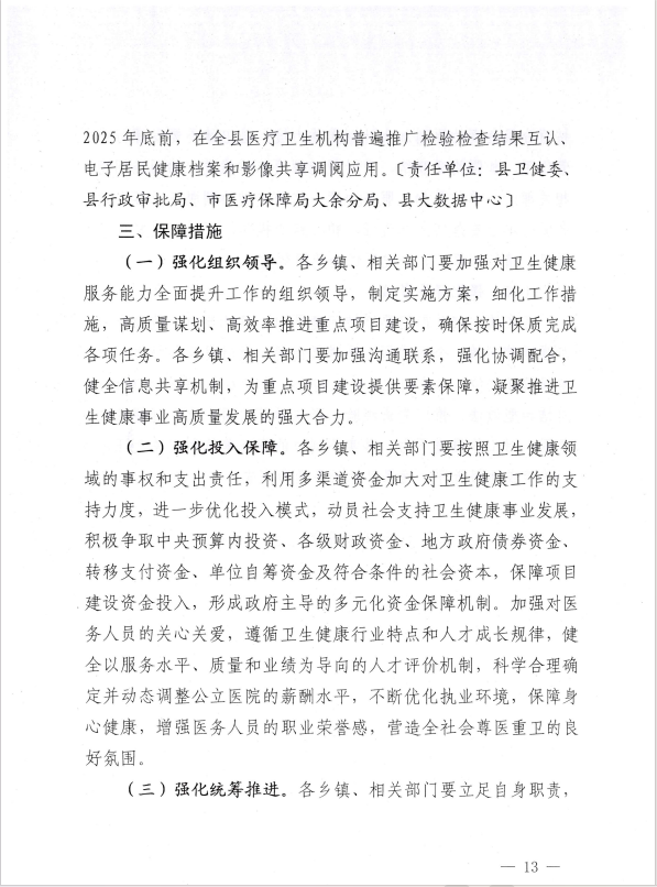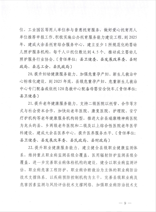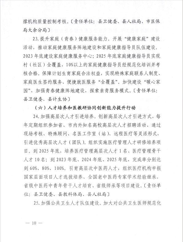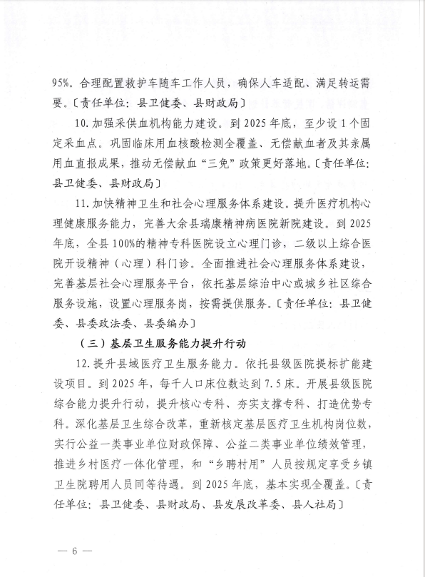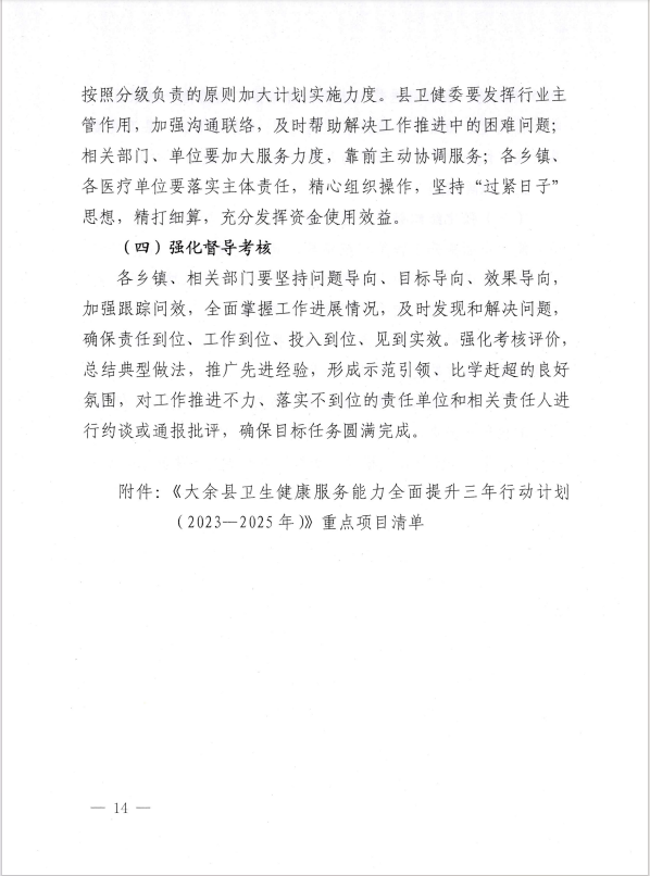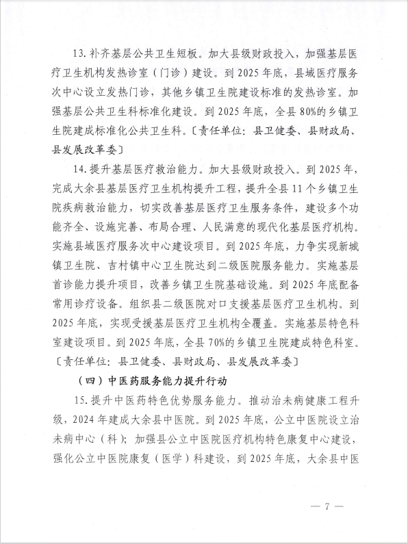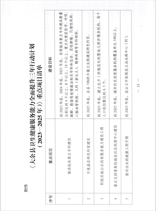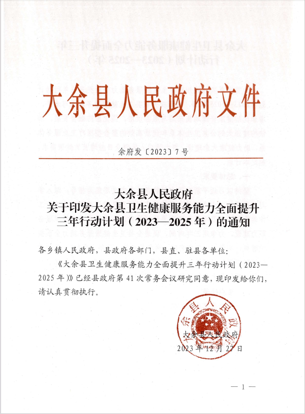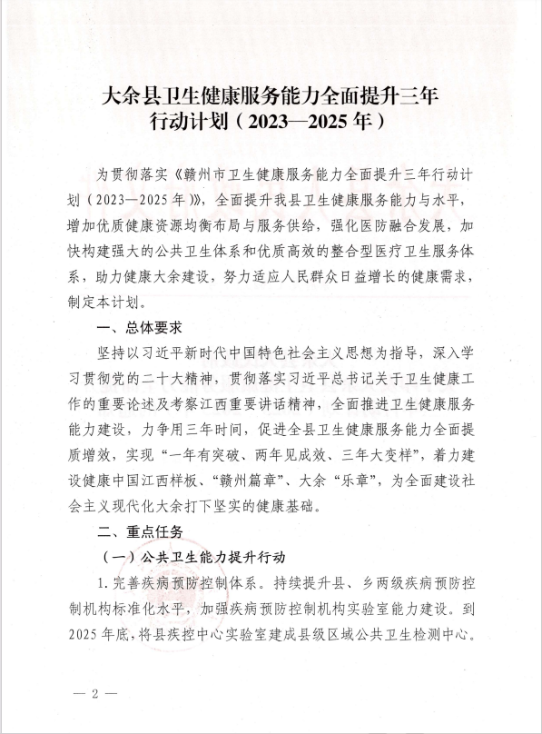 關(guān)于印發(fā)大余縣衛(wèi)生健康服務(wù)能力全面提升三年行動計劃(2023—2025年)的通知