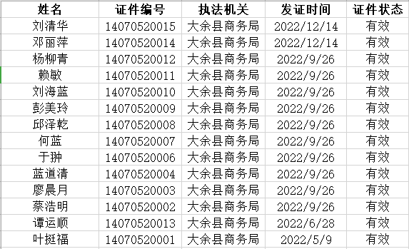 大余縣商務(wù)局行政執(zhí)法人員公示