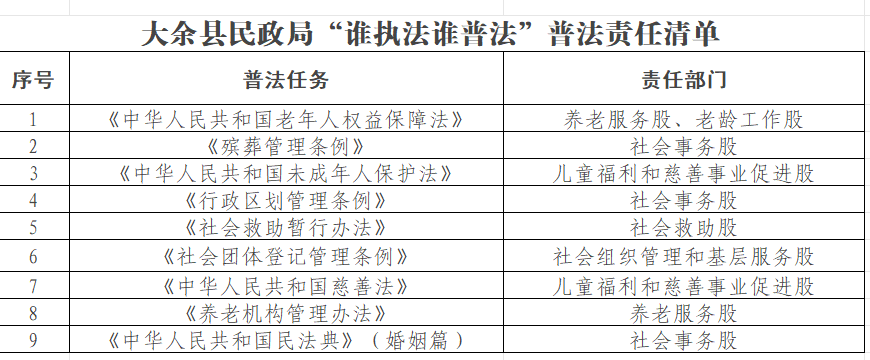 大余縣民政局“誰執法誰普法”普法責任清單