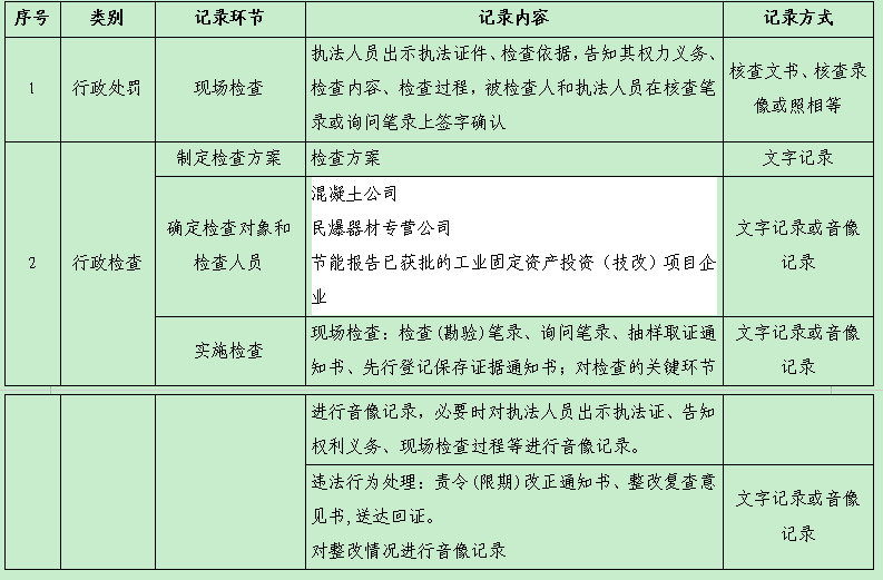 大余縣工業和信息化局執法全過程(音像記錄)記錄事項清單