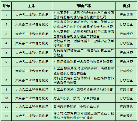 大余縣工業和信息化局行政執法事項清單